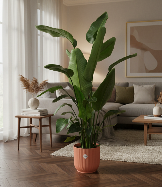 De Strelitzia Nicolai geeft je interieur een tropische en luxe uitstraling.
